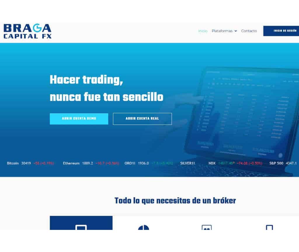 A continuación, un examen detallado del portal web de BRAGA CAPITAL FX, junto con una captura del mismo al momento de realizar este análisis.