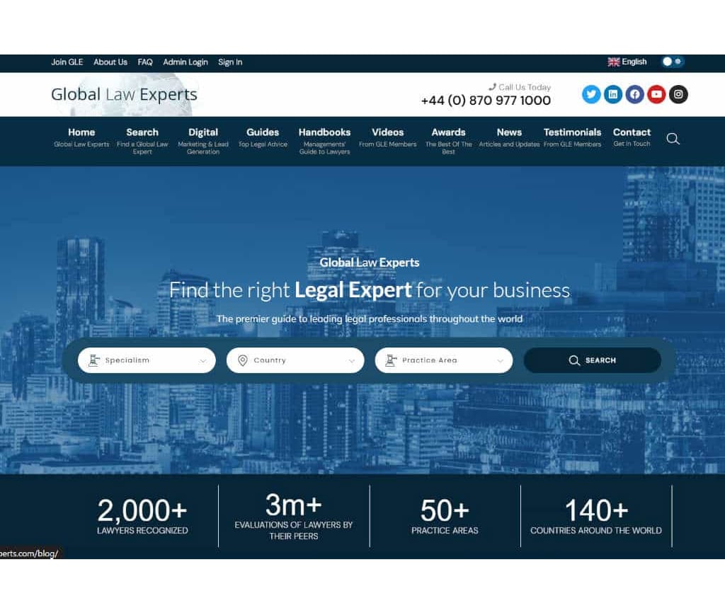 A continuación, un análisis del sitio web de Global Law Experts, además, una captura del sitio web al momento de elaborar este análisis.