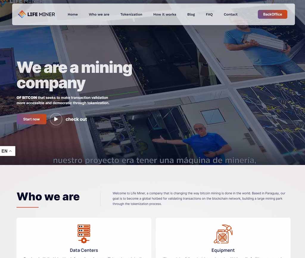 A continuación, un análisis del sitio web de LIFE MINER, además, una captura del sitio web al momento de elaborar este análisis.