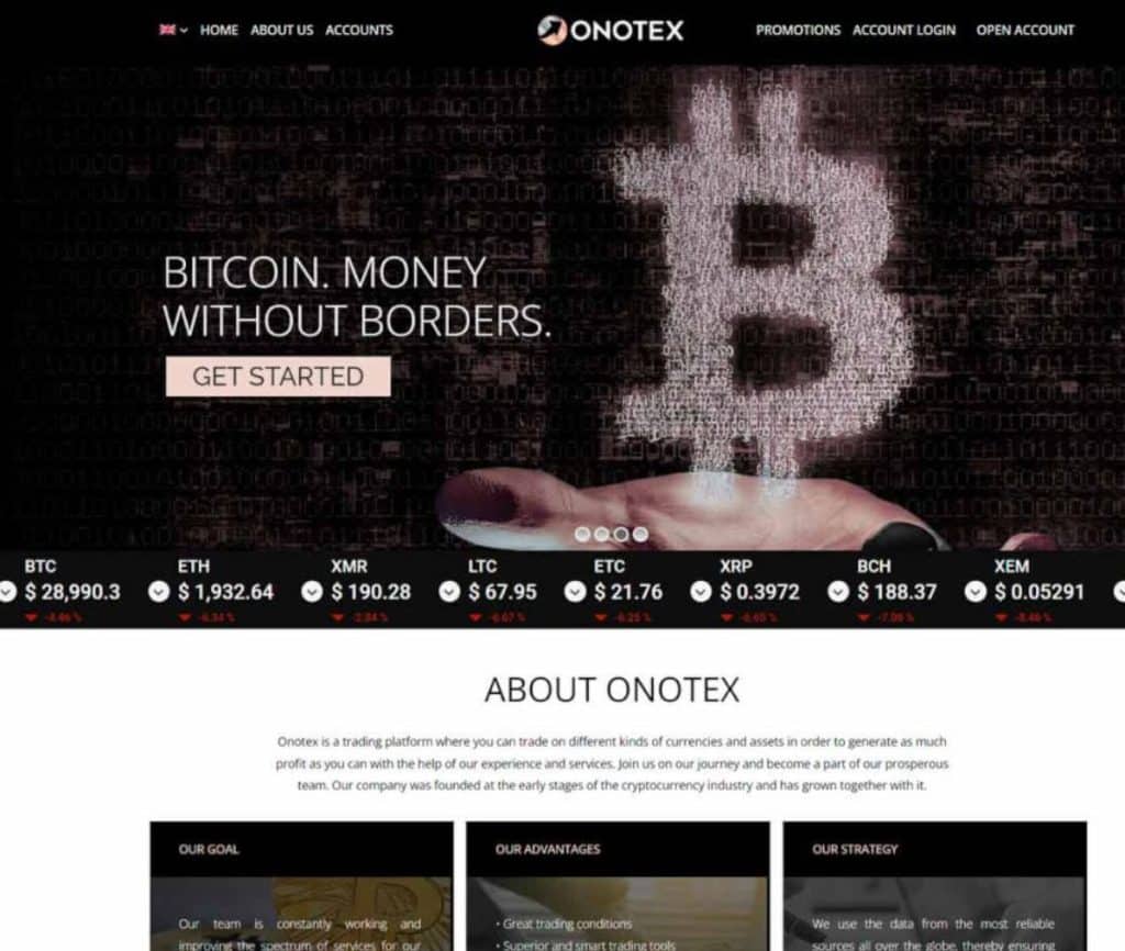 ONOTEX opera con Criptomonedas. Para ello utiliza la plataforma propia. El sitio web ofrece al usuario algunas explicaciones de los productos que Onotex ofrece, explicación de conceptos básicos del mundo de las inversiones, realmente no mucho más.