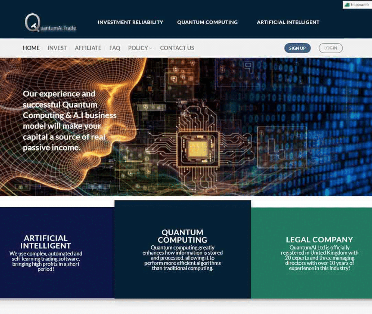 QuantumAI Trade es un broker de Forex, Criptomonedas y CFDs. QuantumAI Trade se encuentra ubicado en Reino Unido, aunque es más que probable que este dato sea falso. Esta compañía es parte de: desconocido.