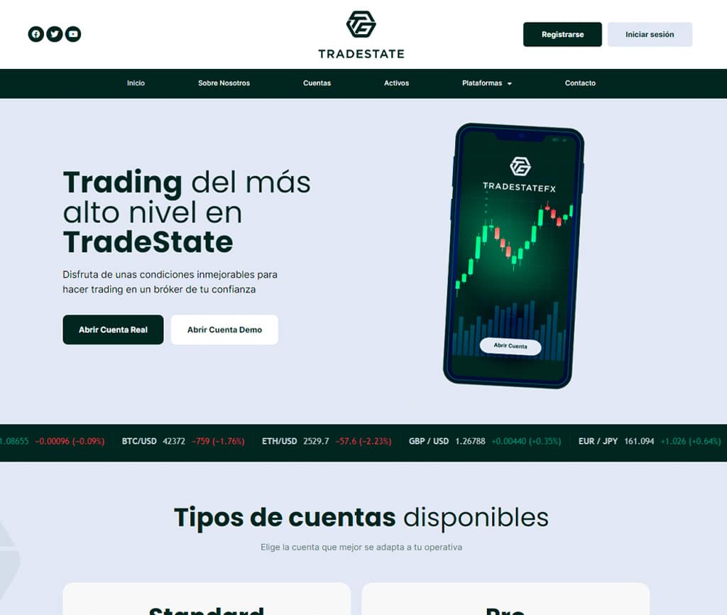 A continuación, un análisis del sitio web de TradeState, además, una captura del sitio web al momento de elaborar este análisis.